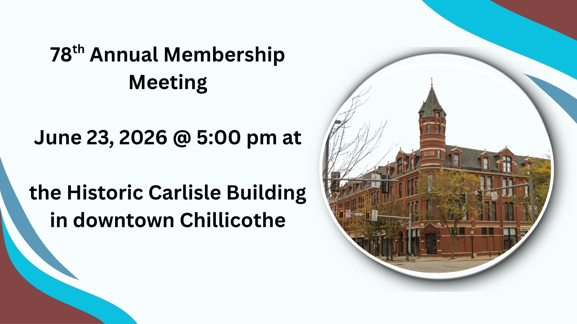 The 78th Annual Membership Meeting will be held on June 23, at the historic Carlisle Building in downtown Chillicothe. Come and enjoy a Casa Taco Bar and a historic landmark. The meal will begin at 5:00 pm with the annual business meeting to follow. There are two board seats up for re-election each being three year terms. Below are the board candidate requirements.